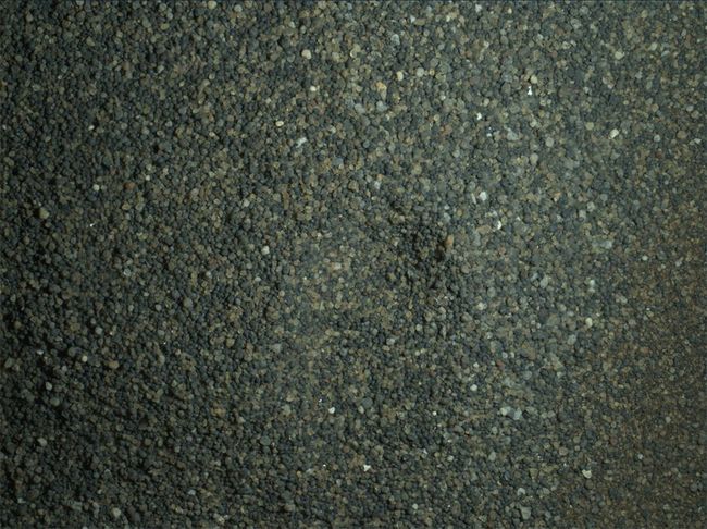 The dark appearance is purposeful: The camera team chose an exposure setting that would prevent most of the white grains in this otherwise very dark sand from being over-exposed.