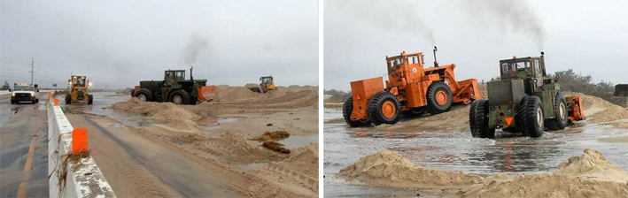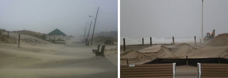 “In Delaware, tides washed out dunes, leaving several feet of water and 3 feet of sand along state Route 1. Transportation officials say it may take two days to clear the sand.”