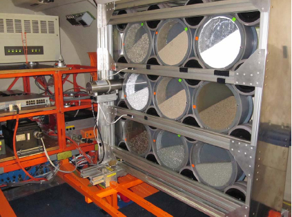The research team used a parabolic flight campaign to mimic Mars’s lower gravity and test the effect on angles of repose of different materials. As the plane followed its roller coaster style path, slowly rotating cylinders containing different materials experienced one tenth of Earth’s gravity, Martian gravity and the Earth’s normal pull.