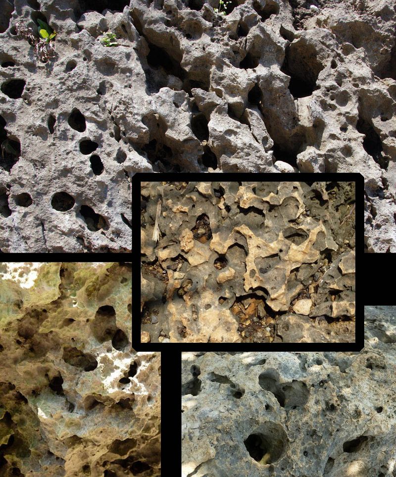 And, as further geo-entertainment, the weathering of the limestone boulders produced a starkly rugged form of tafoni: