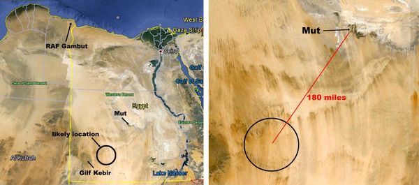 Thanks for the correction - as I said, it was just a guess. I suppose that I was confused by the reference to Wadi el Gedid (or Wadi al-Jadid), which is an alternative term for the entire New Valley Governorate that covers a huge area of southern Egypt west of the Nile. Online maps showing Wadi al-Jadid (and I double-checked quite a few, including Egyptian ones) show a point south or southwest of Mut/Kharga (the governorate capital)which must locate approximately the centre of the administrative area, not a specific wadi. Add the 100 or 200 miles descriptions, and the fact that the guy who discovered it was on an expedition, plus the limestone landscape (not, admittedly, uncommon!)and I just made a guess. This does not detract, however, from the interest and poignancy of the story. BUT, Cassandra, could you provide a non-specific description of the general area in which the plane is - you say it is not south of Mut, is it north, west.....?
