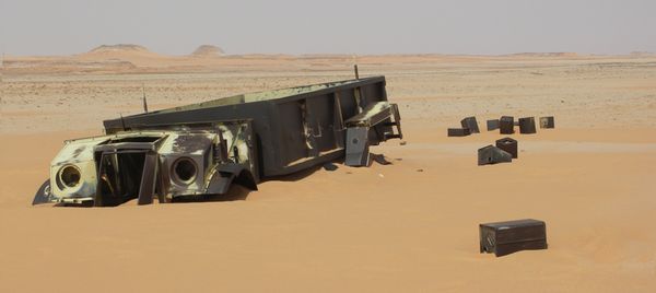 The Western Desert of Egypt and Libya is strewn with well preserved wreckage from WW II, but this is an extraordinary example. This is the BBC description: