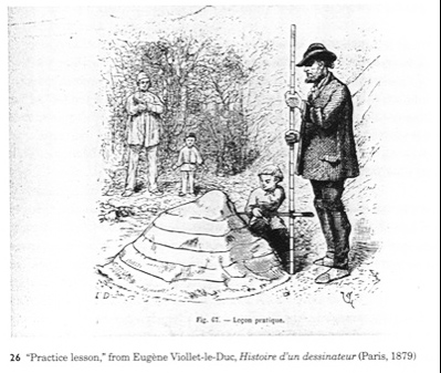 Continuing my journey, I then discovered a “novelette” that le-Duc had written shortly before his death. Histoire d’un dessinateur (literally, story of a drawer - in the artistic sense) is the tale of a young lad, the son of a gardener, taken under the wing of his father’s employer, an artist whose own son has none of the talents of the gardener’s boy. The story is summarised at http://www.gombrich.co.uk/showdoc.php?id=107 where I came upon the following description and illustration: