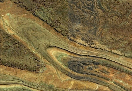Another connection-following journey, entertaining, informative - and time-consuming. For his 12th day of Christmas post, back on January 5th, Chris Rowan of Highly Allochthonous wrote of “Twelve folds a-plunging,” describing, and giving some dramatic examples of, the natural calligraphy of large-scale folding of the earth’s crust; here’s one that he provided from Australia.