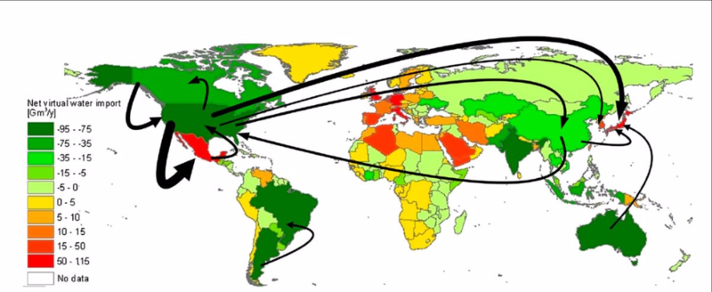 By this measure, the US is not a net water importer. But then how much of its own water does it export? And then look at Europe.