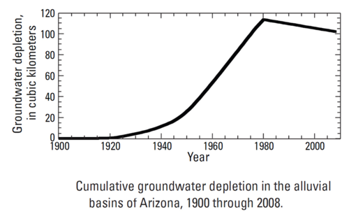Levels in the Ranegras Valley have declined by over 60 feet in the last twenty years. Even recently, when there has been some modest improvement in some areas, the levels continue to decline around Vicksburg. Then put this in the context of the overall depletion of groundwater reserves in the groundwater basins of southern Arizona over the last century, as graphically analysed by the USGS in their (depressing) 2013 report: