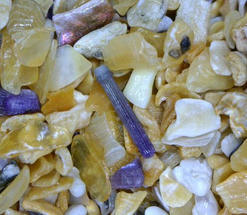 Things got interesting again, however, when I decided to try my hand at getting pictures of my sands. At first, I tried a digital microscope and although it turned out to be an interesting exercise, the quality just wasn’t there. The edges, for example, are usually blurry, the definition is often lacking and the color is rarely true. These problems would even be too much for a Photoshop package. You can, however, get a good idea of what is lurking in your sand sample at 20x, as in this image of sand from Fintragh beach, but it is not suitable for framing.