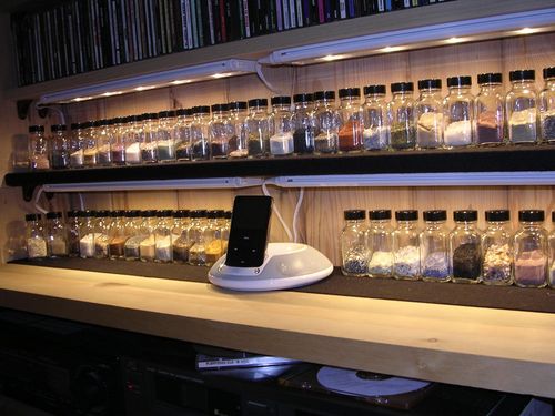 For the last 15 years, on and off, I have been collecting sand. The “off” times resulted from not having an answer to the question, ‘what do I do with all of this sand?’ I have tried various methods of displaying my sands as you can see below. Two-ounce bottles with overhead lighting being the best.