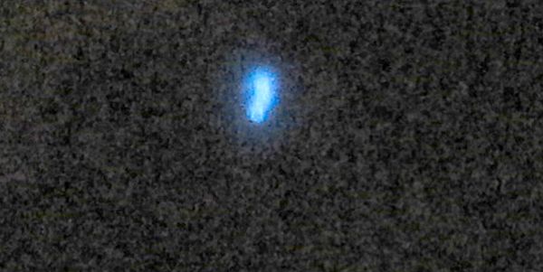 The result was a whole crazy group of people leaping around, stamping on the sand and shouting in delight – bioluminescence! Not the easiest phenomenon to photograph, but François just sent me this image, which I have adjusted slightly so that the sand grains are visible for scale: