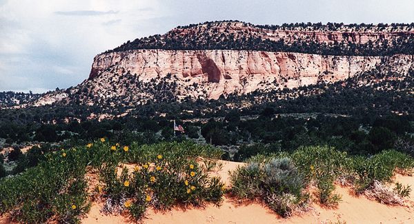 The bluffs of ancient Navajo dunes in south-western Utah have been exposed to the attack of weathering and erosion for a long time, disintegrating and liberating the tough little sand grains. Those grains have been swept along by rivers, left in sand banks, dried out, and picked up by the wind for the next stage of their travels – to the Coral Pink Sand Dunes State Park. There they rest, for a while, on their never-ending journey, and what you see in those dunes today are re-cycled grains from a desert nearly two hundred million years ago.