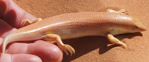 Charming chap, or chapess. So much prettier than a naked mole rat, a star mole, or other near-surface dwellers. Thanks for the encounter, and the splendid photos. Skink \*and\* swim. Hope the camels were as engaging. Glad your journey went well.