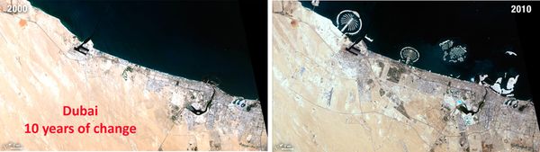 Landsat images reveal subtle, gradual changes, such as Wyoming rangelands greening up after a drought, as well as massive landscape changes that occur in rapidly growing urban areas. Landsat can also provide inexpensive assessments of sudden natural or human-induced disasters, such as the number of acres charred by a forest fire or the extent of tsunami inundation.