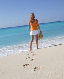 The photo on the left is typical of those used by tourist boards to lure visitors to sun-drenched beaches, to escape to tranquility and commune with nature, feel the warm sand between the toes - "book now, before anyone else...